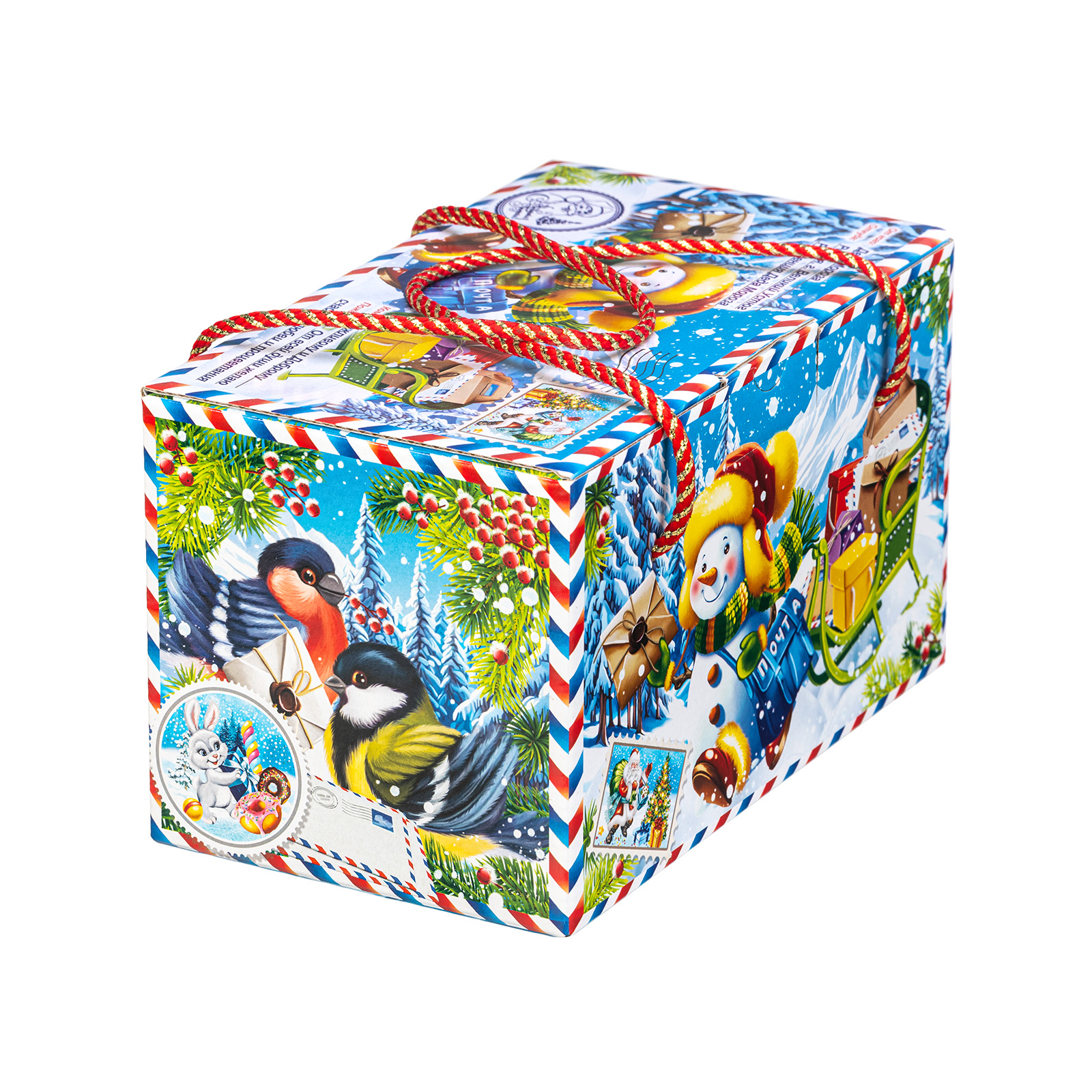 Интересный вариант новогоднего подарка – « Почтальон Снежкин». Он представлен в разделе Картон. Отлично подойдет на подарок в 2026 году с символом Лошадь. Внутри такого презента находится кондитерский набор весом 1000 граммов.