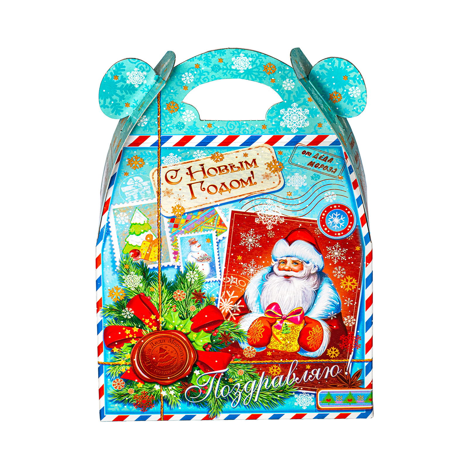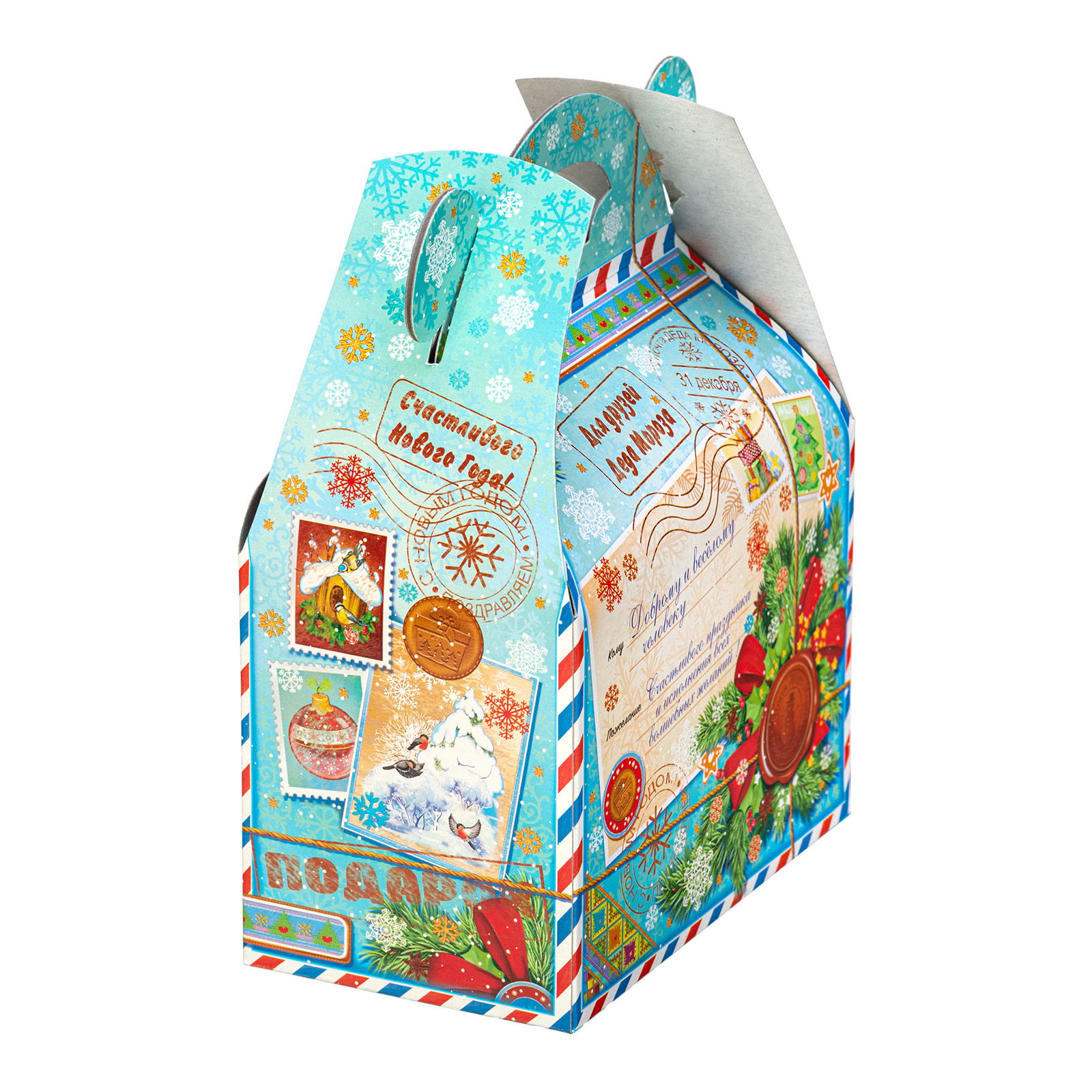 Новогодние сладкие подарки в картонной упаковке актуальны и по сей день. Набор “Сундучок открытки” - это универсальный выбор, который прекрасно подойдет как для ребенка, так и для совершенно взрослого сластены. Подарочная упаковка прекрасно сочетает в себе яркие праздничные иллюстрации и приятный нежно-голубой фон. Внутри набора хранятся 500 грамм самых разнообразных сладостей от ведущих кондитерских предприятий и небольшой памятный сувенир, который надолго сохранит в себе волшебную атмосферу новогодних праздников.