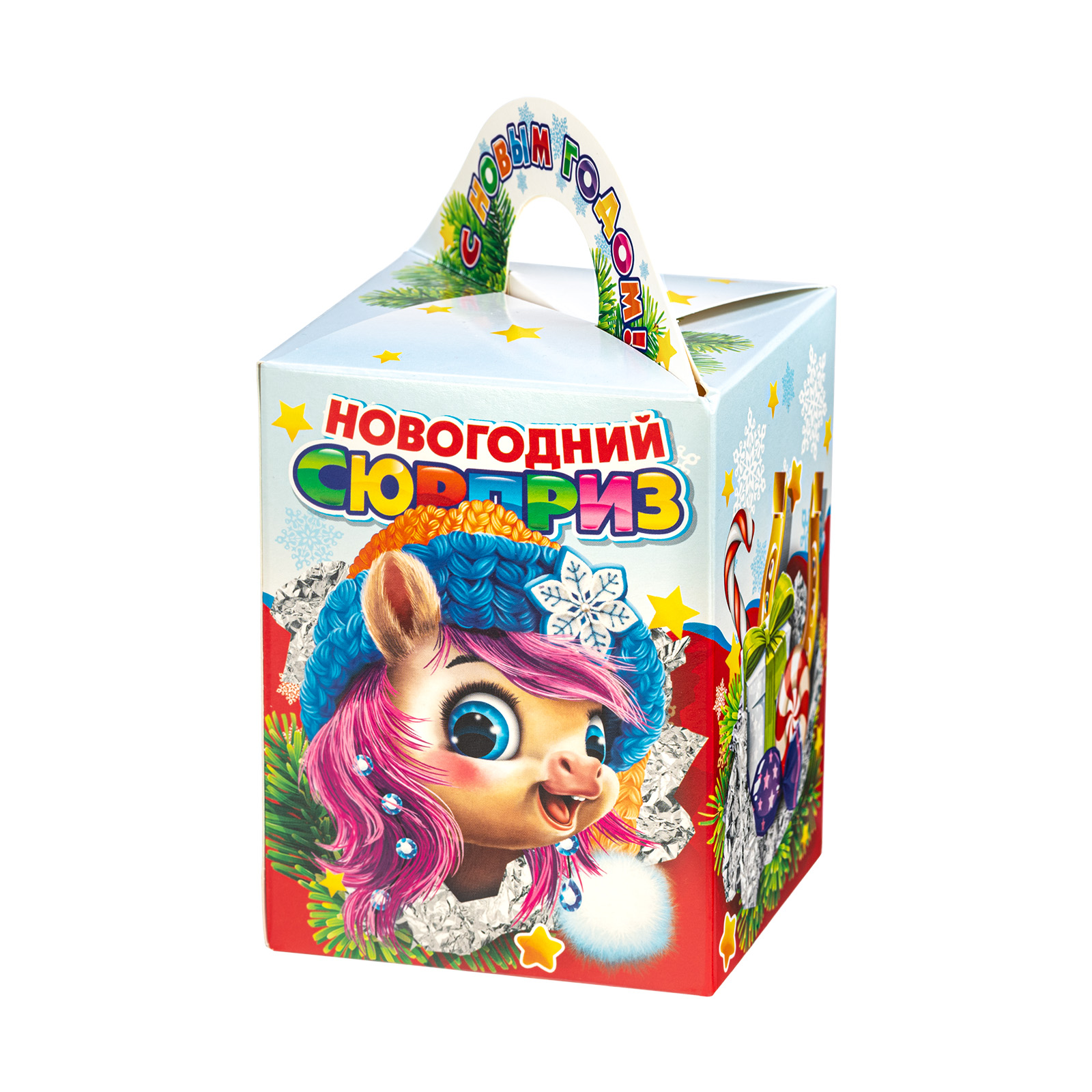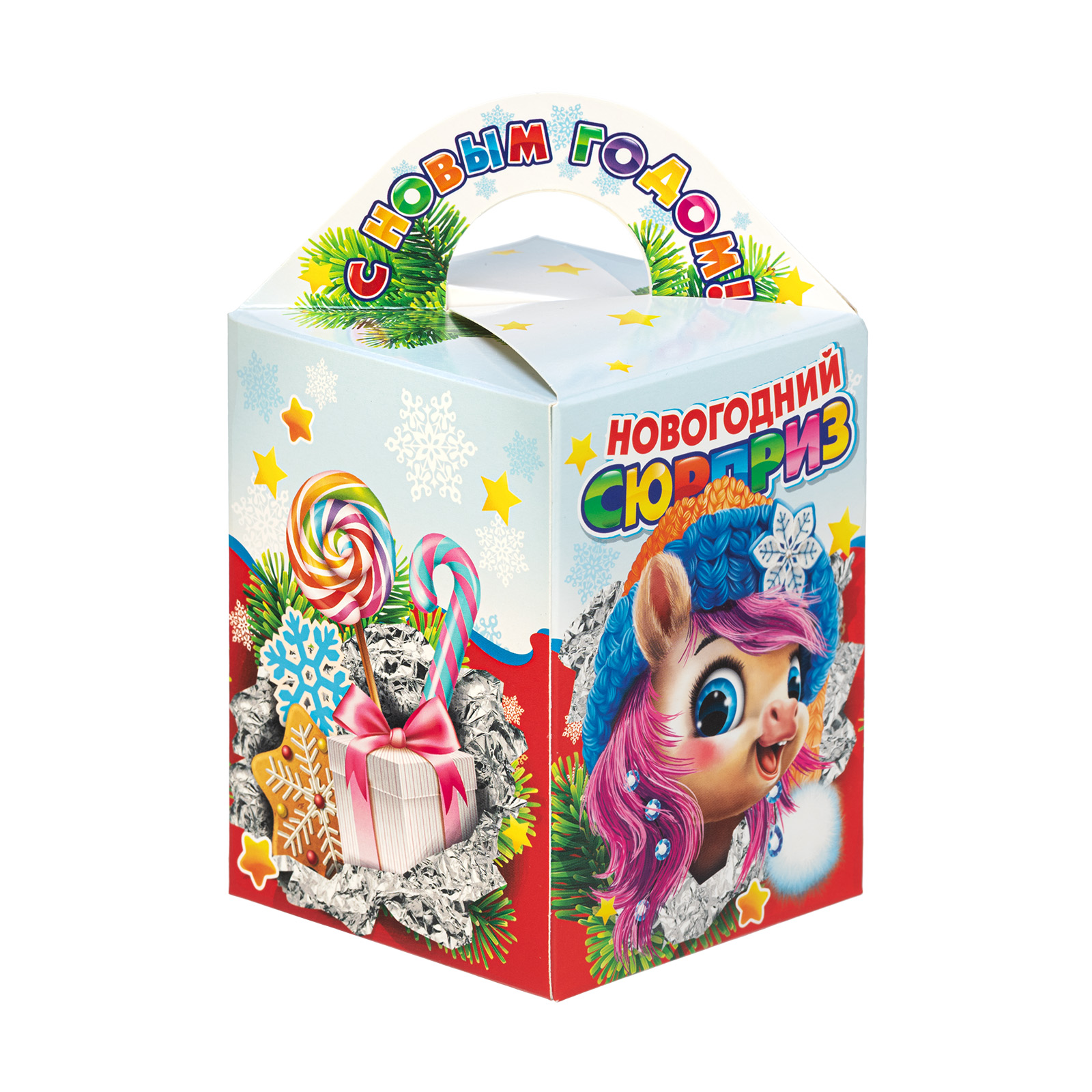 Интересный вариант новогоднего подарка – «Вкусный привет (Полезный состав)». Он представлен в разделе Картон. Отлично подойдет на подарок в 2026 году с символом Лошадь. Внутри такого презента находится кондитерский набор весом 300 граммов.